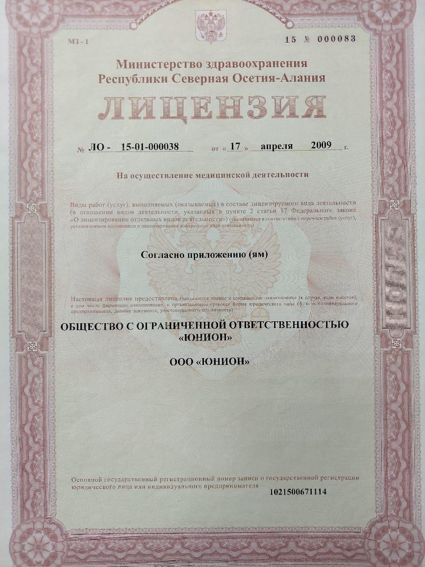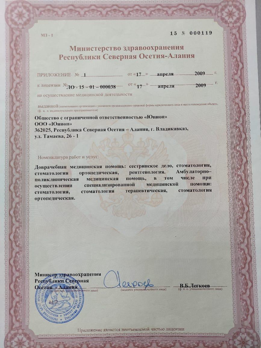 Лицензия на право оказания стоматологических услуг стр.1, стр. 2.